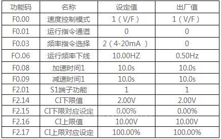 ◆ 設(shè)置F0.14運(yùn)行頻率下限為10Hz,當(dāng)2個(gè)電機(jī)需要切換投入使用時(shí),節(jié)能控制器會(huì)發(fā)出指令讓變頻器運(yùn)行到下限頻率,再讓電機(jī)投入,這樣既可以保證啟動(dòng)平穩(wěn),又可以使設(shè)備快速到達(dá)告訴,提高產(chǎn)量