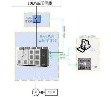(2)系統(tǒng)配置:項(xiàng)目選用匯川HD92-J100/5000-DN,輸入變壓器選用10Kv/5000kVA干式移相整流變壓器,單元選用匯川HD9M-A069系列功率單元,變頻器每相配置8個功率單元,控制系統(tǒng)選用匯川HD92-MCC1主控系統(tǒng),對外接口選用匯川自主研發(fā)HD92專用的IO系統(tǒng)HD92-IOB2,不采用PLC系統(tǒng),安全可靠,降低了現(xiàn)場由于PLC不可靠引起的故障停機(jī)問題;