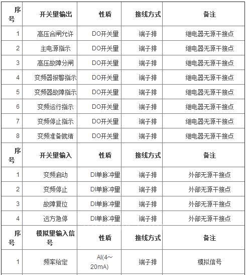 (3)現(xiàn)場遠(yuǎn)程控制采用硬接線的方式,本項(xiàng)目所用到對外接口如下表所示: