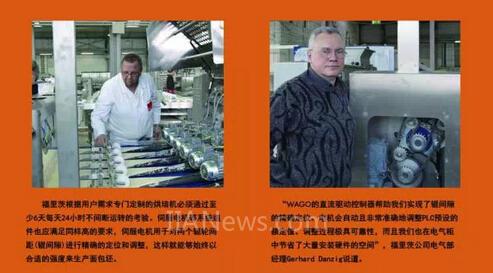 ■福里茨(Fritsch GmbH)公司是一家全球領(lǐng)先的烘培機(jī)械和系統(tǒng)制造商,他們選擇了應(yīng)用直流24V伺服電機(jī)來實現(xiàn)系統(tǒng)的設(shè)置和調(diào)整功能。該公司選用了WAGO的直流驅(qū)動控制器,它在生產(chǎn)過程中所遵循的與眾不同的工序標(biāo)準(zhǔn)使其具備極高的精確度,從而使福里茨具備了智能化且功能強(qiáng)勁的系統(tǒng)控制。