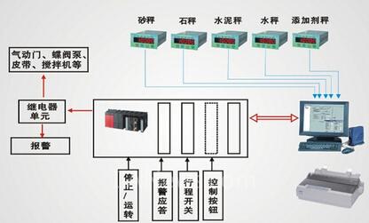 混凝土配料系統(tǒng)采用高可靠、易維護(hù)通用的“稱(chēng)重儀表+PLC+工業(yè)PC”的架構(gòu)。