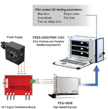 凌華科技PXIe-9848領(lǐng)先的性能為電源測試應(yīng)用提供諸多優(yōu)勢。14位高分辨率可測量極微小的μV等級噪聲,100 MS/s的高采樣率及100 MHz高帶寬的特性可測量到μs等級極快速變動的上升時間,并可輕易滿足其他電源供應(yīng)器特性參數(shù)量測,如過沖和開機(jī)延遲時間等采樣需求。