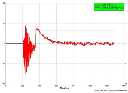 在實際測試過程中,在沒有加入速度、加速度前饋補償,力矩補償等補償算法的情況下,機器人在滿載運行時,會發(fā)生明顯振動。在機器人啟動的瞬間,如果沒有提前給定力矩補償,機器人本體由于重力的作用會發(fā)生下沉的動作,也就是俗稱的“點頭”。而在機器人由高速運行狀態(tài)快速停止時,如果沒有“定位抖動消除”功能,機器人本體會由于慣性的突然變化而發(fā)生抖動。