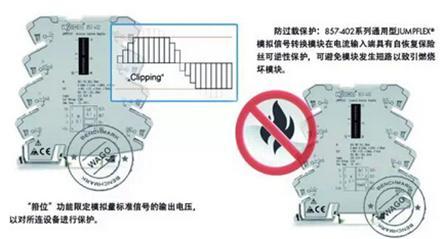857-402系列通用型JUMPFLEX?模擬信號轉換模塊的另一個獨到之處就是它在電流輸入端具有自恢復保險絲。這可以確保大小為±100mA的電流輸入范圍,防止過載的發(fā)生,從而避免模塊發(fā)生短路以致引燃輸入端進而燒壞模塊。該自恢復保險絲可在電流過載時切斷電路,并能夠在過載消失后自動恢復接通然后正常工作,可靠性強。