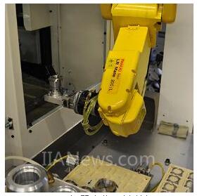 圖3:LR Mate 200機(jī)器人將胚料送入ROBODRILL
