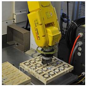 配合ROBODRILL,寶格麗還采用FANUC LR Mate系列萬能機(jī)器人來進(jìn)行上下料?!拔覀兊闹饕康牟皇强s短節(jié)拍,我們更關(guān)注的是加工質(zhì)量和精準(zhǔn)度,尤其是當(dāng)需要加工的胚料是貴重金屬的情況下,通常每個工件的加工時間在90秒或更長。”Schneider說道。運(yùn)用機(jī)器人上料或許對小批量生產(chǎn)幫助并不大,但對生產(chǎn)批量在10,000到20,000的型號來說這又是另外一回事。