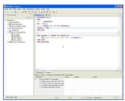 使用面向自動(dòng)化和安全相關(guān)任務(wù)的標(biāo)準(zhǔn)編輯器,用戶(hù)可以任意將功能模塊進(jìn)行組態(tài)并對(duì)EN/IEC 61131-3兼容編輯器的源代碼進(jìn)行編程。