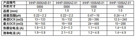 IHHP-0806AZ-01、IHHP-0806AB-01、IHHP-1008AZ-01和IHHP-1008AB-01的最大DCR低至15mΩ,感值從0.22μH到10μH,可實現(xiàn)高效率。器件的熱額定電流達5.3A,工作溫度范圍為-55℃~+125℃。電感器采用符合RoHS,完全無鉛的屏蔽結構進行封裝。