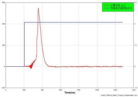 下圖是開啟補(bǔ)償及振動抑制功能后,機(jī)器人本體的位置誤差情況,能夠非常明顯的看出,機(jī)器人本體的振動得到了有效抑制。