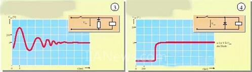 電子可控開關(guān)在動作時會產(chǎn)生大量的尖峰干擾信號,其峰值可能達(dá)到4000V,如圖三所示: