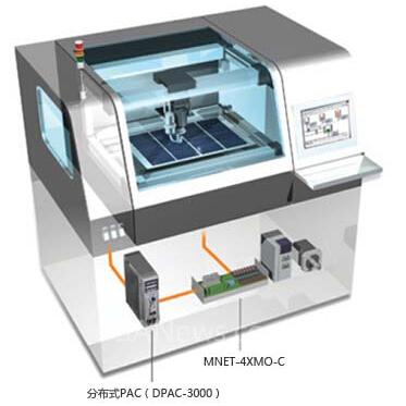 凌華的DPAC是一種分布式可編程自動(dòng)控制器平臺(tái),并配有高速、實(shí)時(shí)的現(xiàn)場總線-Motionnet總線和HSL總線接口。凌華的DPAC-3000作為一個(gè)緊湊型(162×150×50)且強(qiáng)固的控制器,能夠搭配各種HSI I/O與運(yùn)動(dòng)控制模塊來整合點(diǎn)膠機(jī)應(yīng)用。凌華DPAC-3000能夠通過五類線(CAT-5)電纜實(shí)現(xiàn)高速數(shù)據(jù)通訊,這有效地節(jié)約了配線成本。通過結(jié)合凌華MNET-4XMO運(yùn)動(dòng)控制模塊的預(yù)裝載緩存功能,能夠提供連續(xù)的運(yùn)動(dòng)控制以確保滿足點(diǎn)膠機(jī)對(duì)于軌跡控制的要 求。MNET-4XMO-C能夠提供實(shí)時(shí)位置比較及最高100KHz的觸發(fā)輸出。
