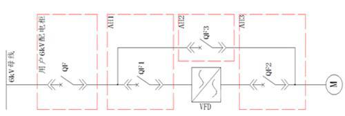 QF1為變頻器輸入斷路器,QF2為變頻輸出斷路器,QF3為工頻旁路斷路器;