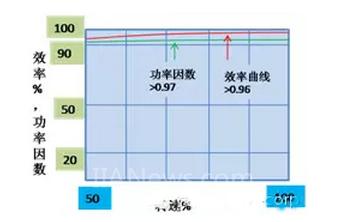 GD5000高壓變頻器在滿載情況下,系統(tǒng)在沒(méi)有使用任何外部功率因素補(bǔ)償裝置的情況下,功率因素≥0.97;整機(jī)效率≥0.96。