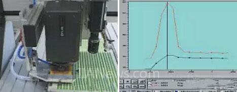 質(zhì)量控制過程中,每個(gè)電阻器都會(huì)充電一小段時(shí)間。紅外熱像儀在20毫秒內(nèi)觀察該元件的熱循環(huán)。利用自動(dòng)化技術(shù)Automation Technology 系統(tǒng)集成商設(shè)計(jì)的IRCheck機(jī)器視覺軟件,計(jì)算機(jī)將電阻器表面的平均溫度和檢測(cè)到的最高溫度進(jìn)行對(duì)比。如果元件的最高溫度與平均溫度之差超出預(yù)設(shè)值,表明該元件存在熱區(qū)。一旦檢測(cè)到熱區(qū),就會(huì)自動(dòng)發(fā)出觸發(fā)信號(hào),將故障元件剔除出生產(chǎn)線。從試驗(yàn)機(jī)進(jìn)入到退出,整個(gè)過程不超過一秒鐘時(shí)間。為了統(tǒng)計(jì)過程控制,元件存在缺陷的熱圖像被存儲(chǔ)在數(shù)據(jù)庫中。