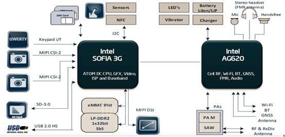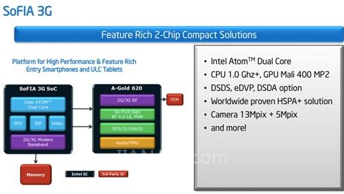 SoFIA 3G:雙核平臺(tái),包含與3G調(diào)制解調(diào)器集成的英特爾凌動(dòng)處理器;