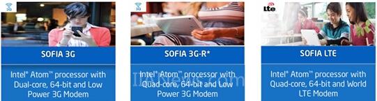 SoFIA 4G:四核平臺(tái),包含與LTE調(diào)制解調(diào)器集成的英特爾凌動(dòng)處理器。