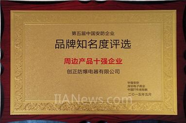 創(chuàng)正榮獲第五屆中國(guó)安防企業(yè)品牌知名度十強(qiáng)企業(yè)稱號(hào)
