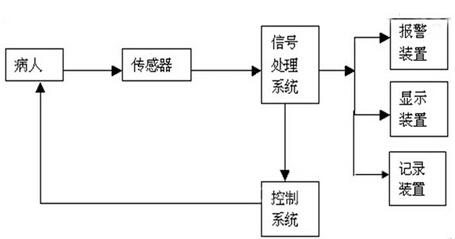監(jiān)護儀主要由4個部分組成:信號參數(shù)、模擬處理、數(shù)字處理、信息輸出。根據(jù)臨床需要選擇不同的監(jiān)護項目,監(jiān)護儀便可通過相應的檢測模塊采集人體參數(shù),再經(jīng)過放大、濾波、轉(zhuǎn)化,然后將檢測信號進行運算、分析和存儲,在結果輸出顯示的同時,系統(tǒng)還要協(xié)調(diào)各部分的工作,如分析報告、打印、報警等。