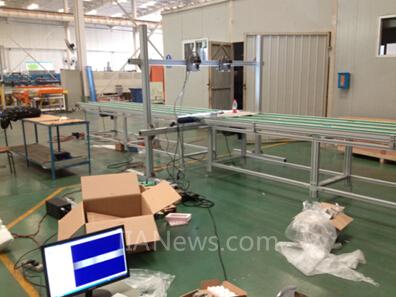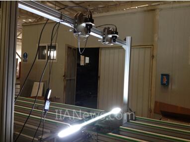 圖2 試生產(chǎn)階段,檢測(cè)玻璃通過(guò)2臺(tái)線掃相機(jī),項(xiàng)目利用線掃光源作背光使用。
