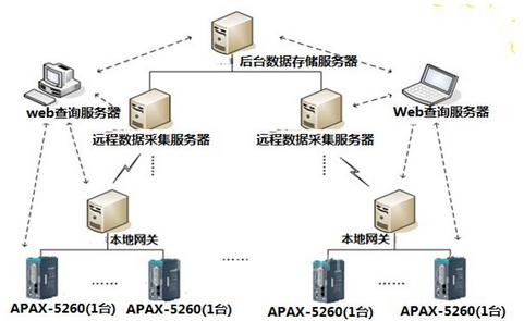 3:本地網(wǎng)關,做為區(qū)域服務器用來接收本地域內(nèi)APAX-5620數(shù)據(jù)包,并打包處理送到總部接收服務器上。
