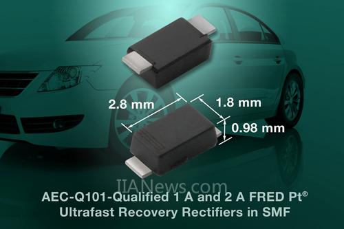引言:日前,Vishay推出6顆新的1A和2A電流的FRED Pt? 超快恢復(fù)整流器,新產(chǎn)品可以應(yīng)用在汽車和通信應(yīng)用中,從而節(jié)省空間并提高功率密度。