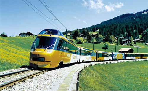 瑞士金色山口(GoldenPass line)列車(chē)于8:45正點(diǎn)從日內(nèi)瓦湖邊的蒙特勒(Montreux)出發(fā)。在接下來(lái)的兩個(gè)半小時(shí)中,列車(chē)將經(jīng)過(guò)多個(gè)山口和峽谷,穿越瑞士風(fēng)光最為秀麗和引人入勝的區(qū)域。列車(chē)將會(huì)在10點(diǎn)43分抵達(dá)茨魏西門(mén)(Zweisimmen),11:21通常準(zhǔn)時(shí)停靠于西門(mén)塔爾(Simmental)的倫克站(Lenk)。瑞士這種特有的米軌機(jī)車(chē)搭載全景車(chē)廂,在整個(gè)旅程中列車(chē)會(huì)經(jīng)過(guò) 36 個(gè)村莊和車(chē)站,大約50個(gè)平交道口,以及眾多的信號(hào)和控制裝置。