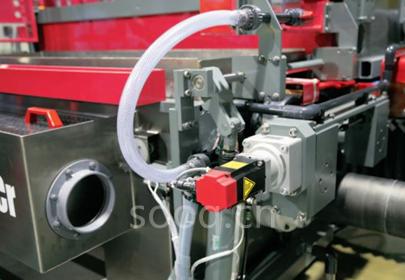 重田社長(zhǎng):我們研發(fā)的激光凹版制版系統(tǒng)“New FX2”配有2臺(tái)FANUC R-2000iB機(jī)器人,實(shí)現(xiàn)了激光加工和電鍍等13道工序的完全自動(dòng)化。擁有機(jī)器人的系統(tǒng)與以前采用吊車(chē)的系統(tǒng)相比,實(shí)現(xiàn)了安裝面積、耗電、VOC/CO2排放量、油墨和溶劑使用量以及操作員人數(shù)的削減。“New FX2”中還裝有FANUC Power Motion伺服裝置,可以讓電鍍的電極迅速準(zhǔn)確地動(dòng)作或準(zhǔn)確地驅(qū)動(dòng)噴嘴。