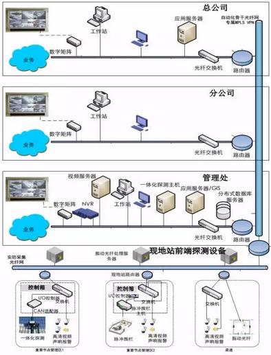 南水北調(diào)中線干線工程安防系統(tǒng)以提升南水北調(diào)中線工程安全管理水平為總目標,遵循“需求牽引、統(tǒng)籌設(shè)計、突出重點、分步實施、資源共享”的建設(shè)原則,突出“實用性、先進性、安全性、共享性”,綜合運用物聯(lián)網(wǎng)技術(shù)/數(shù)字視頻技術(shù)/通信技術(shù)/計算機技術(shù)/網(wǎng)絡(luò)技術(shù)等多門學科,構(gòu)建基于視頻監(jiān)控、智能電子圍欄的立體化智能安防系統(tǒng),與自動化調(diào)度管理系統(tǒng)等技防/物防/人防相結(jié)合,基本形成完善的南水北調(diào)中線工程安全防范體系,提升工程安全防護能力,提高安全管理水平和效率,為南水北調(diào)中線工程安全、供水安全和人身安全提供全方位的支撐。