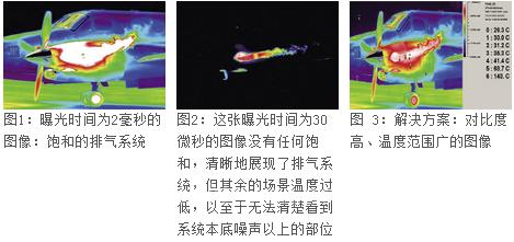 曝光時(shí)間為2毫秒的圖像,場(chǎng)景的每個(gè)部分都有良好的對(duì)比度,但飛機(jī)的排氣系統(tǒng)除外,這個(gè)部位溫度太高,以至于這部分的圖像發(fā)生飽和。(圖1)
