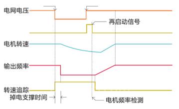 HD90系列高壓變頻器具備飛車啟動(dòng)功能,能夠在未知電機(jī)旋轉(zhuǎn)速度的狀況下啟動(dòng)變頻器,變頻器自動(dòng)進(jìn)行頻率搜索,直至搜索到與電機(jī)實(shí)時(shí)旋轉(zhuǎn)頻率相符的頻率,此時(shí)變頻器輸出相應(yīng)頻率,并控制電機(jī)旋轉(zhuǎn)至指定頻率,此技術(shù)能有效減少瞬間停電對(duì)生產(chǎn)的影響以及對(duì)電網(wǎng)的沖擊。