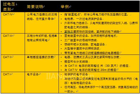 過電壓安裝類別。IEC 61010 適用于低壓 (< 1000 V) 測試設(shè)備。CAT IV