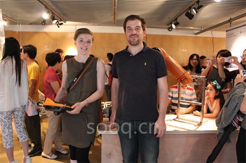 Johannes Braumann 教授(右)出席于7月5日在同濟(jì)大學(xué)舉辦的DADA 2015“數(shù)字工廠”機(jī)器人建造工作營成果展