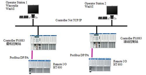 本項目采用杭州盈控HT 600自動化控制系統(tǒng), 配置拓撲圖如下: