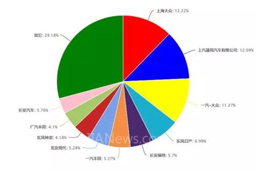 圖4 2015年上半年基本型乘用車企業(yè)前十名市場占有率