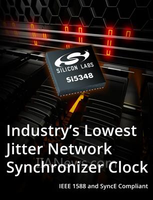 互聯(lián)網(wǎng)基礎(chǔ)設(shè)施應(yīng)用領(lǐng)域中高性能時鐘解決方案的領(lǐng)先供應(yīng)商Silicon Labs(芯科科技有限公司,NASDAQ:SLAB)今日宣布推出業(yè)界具備最高性能和成本效益的分組數(shù)據(jù)包交換網(wǎng)絡(luò)同步時鐘IC。新型的Si5348時鐘IC是高集成度的符合標(biāo)準(zhǔn)的解決方案,擁有最好的抖動性能、業(yè)內(nèi)最小尺寸和最低功耗。Si5348時鐘IC使得硬件設(shè)計人員能夠為Synchronous Ethernet(SyncE)、IEEE 1588v2、以及無線和電信基礎(chǔ)設(shè)施、寬帶網(wǎng)絡(luò)(例如 DSL和PON)、數(shù)據(jù)中心應(yīng)用中的通用頻率變換提供理想的“片上時鐘樹”解決方案。