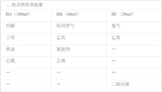 IIC:氣體組別,氣體根據(jù)最小點(diǎn)燃能量的不同,分成不同的組別