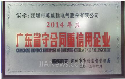 日前,由廣東省工商行政管理局開展的“廣東省守合同重信用企業(yè)”公示活動(dòng)中,深圳市英威騰電氣股份有限公司獲得“廣東省守合同重信用企業(yè)證書”。公示活動(dòng)的開展,意在引導(dǎo)企業(yè)加強(qiáng)合同和信用管理,促進(jìn)企業(yè)信用體系建設(shè)。