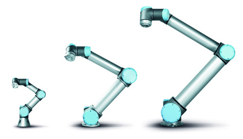 優(yōu)傲機(jī)器人公司現(xiàn)共有三款協(xié)作機(jī)器人 —— UR3、UR5和UR10。于2015年3月最新推出的UR3是現(xiàn)今市場(chǎng)上最靈活輕便、并且可與工人一起肩并肩工作的臺(tái)式機(jī)器人。它自重僅為11公斤,但是有效負(fù)載卻高達(dá)3公斤,所有腕關(guān)節(jié)均可360度旋轉(zhuǎn),而末端關(guān)節(jié)可作無限旋轉(zhuǎn)。UR5自重18公斤,負(fù)載高達(dá)5公斤,工作半徑85cm。UR 10可負(fù)載10公斤,工作半徑130cm。三款機(jī)器人均以編程的簡(jiǎn)易性、以及與人一起工作的協(xié)作性和安全可靠性享譽(yù)業(yè)內(nèi)。
