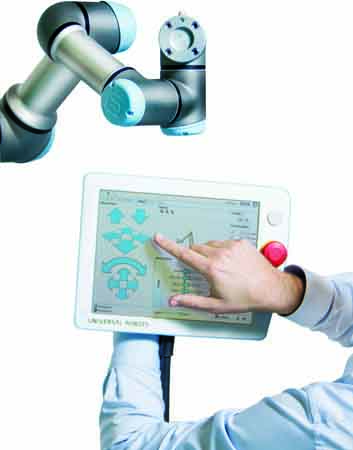 UR機(jī)器人的“人機(jī)協(xié)作”功能讓員工可以安全地與機(jī)器人近距離一起工作。特有的受力傳感使其一旦與人發(fā)生碰撞,將自動(dòng)限制接觸時(shí)產(chǎn)生的力量大小。例如默認(rèn)受力傳感上限設(shè)為150牛頓的力,即:一旦人與機(jī)器人接觸并產(chǎn)生150牛頓的力,UR機(jī)器人就會(huì)自動(dòng)停止工作。但也可以調(diào)整為:一旦在作業(yè)路徑上遇到低至50牛頓的力即自動(dòng)停止工作。此外,UR機(jī)器人具有直觀的用戶編程界面,通過點(diǎn)擊觸摸板上的箭頭即可控制機(jī)器人移動(dòng)方向。對(duì)于工人來說,簡(jiǎn)單的安裝、調(diào)試、編程無需專業(yè)的技術(shù)背景或?qū)I(yè)的編程經(jīng)驗(yàn)即能完成。這些獨(dú)特優(yōu)勢(shì),使得UR機(jī)器人獲得全球多家汽車制造商的青睞。