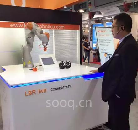 第二套展品是大名鼎鼎的KUKA最新智慧人機(jī)交互機(jī)器人LBR iiwa,在展會現(xiàn)場iiwa展示檢測pad應(yīng)用工作站。該款人機(jī)交互機(jī)器人能夠完成電子產(chǎn)品的檢測流程;通過自動搜索功能,iiwa能夠準(zhǔn)確地插入音頻線,并且能夠有精確控制力點(diǎn)擊Home鍵,實(shí)現(xiàn)開機(jī),還能利用觸摸筆劃屏解鎖并點(diǎn)擊視頻播放,這些都展示了集成高精度傳感器能夠?qū)崿F(xiàn)精準(zhǔn)力控的特點(diǎn)。