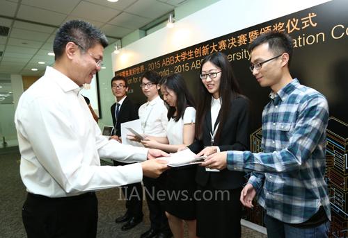ABB中國人力資源負(fù)責(zé)人李瑞晟為創(chuàng)新大賽三組一等獎(jiǎng)獲得者頒獎(jiǎng)