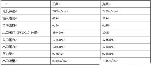 改變頻后比工頻運(yùn)行時(shí)的參數(shù)對(duì)比表: