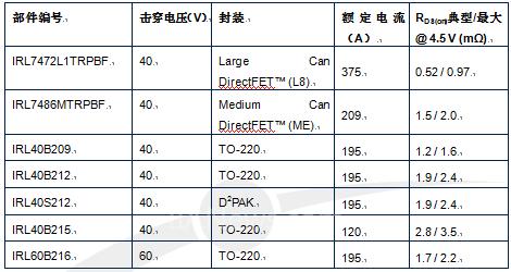 新器件保留了StrongIRFET系列的典型性能特色:低導通電阻(如下IRL7472L1TRPBF,典型值只有0.52 m?和最大值是0.97 m?)降低導通損失;高載流能力提高功率容量以及耐用硅晶片,所有這些特性共同提升了系統(tǒng)高可靠性。
