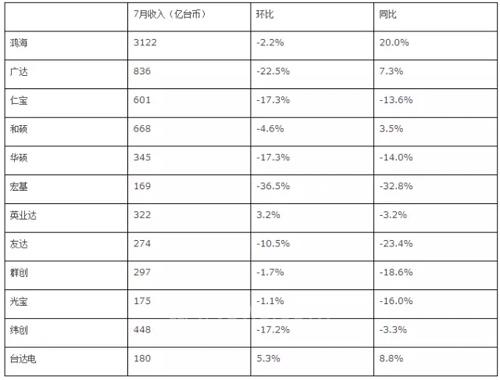 上半年,金仁寶、三星加快撤離步伐,偉創(chuàng)利遠赴美國設(shè)廠,富士康大舉進軍印度,曾經(jīng)風靡全球的中國電子產(chǎn)業(yè)走上了下坡路。下面列舉幾家最具代表性的電子2015年7月份的營收情況: