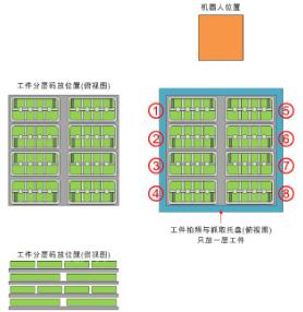 1)工件分層碼放在旁邊,每次只將一層工件放到拍照與抓取位置(如圖 11 所示) 。