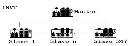 變頻器在多機隨動的情況下,此功能的實現(xiàn)方式是,把高壓變頻器的控制器通過高速通訊網(wǎng)絡(luò)組網(wǎng),參數(shù)設(shè)置里,把需要隨動的變頻器設(shè)定為從,把需要電控系統(tǒng)來控制的變頻器設(shè)置為主。主從控制網(wǎng)絡(luò)示意圖如圖所示。主從控制方式中,可以控制同步啟停和功率平衡。