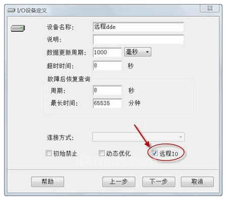 數(shù)據(jù)服務(wù)器端也需要定義設(shè)備和組點(diǎn)連接,就好像是數(shù)據(jù)服務(wù)器就在目標(biāo)機(jī)器上一樣。不過在定義設(shè)備的時(shí)候需要指明遠(yuǎn)程IO項(xiàng),如下圖所示。