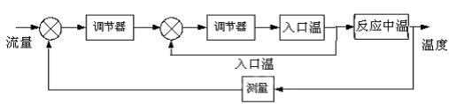 在醋酸乙烯的生產(chǎn)過程中由于反應(yīng)器中溫控制要求比較嚴格,達到正負零點五度,而且他的好壞還關(guān)系到最終產(chǎn)品的質(zhì)量的高低,,因此對反應(yīng)中溫的控制采用了串級控制.其結(jié)構(gòu)框圖如下:
