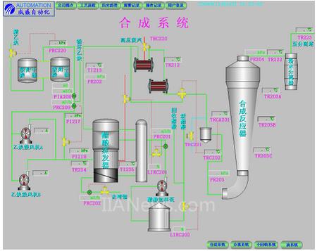 a、實現(xiàn)各個單元操作的集中監(jiān)控,包括:溫度、壓力、流量、液位等物理量的監(jiān)測與控制。動態(tài)參數(shù)檢測、控制必須準確、可靠。合成反應(yīng)器的中溫要求170正負0.5度,醋酸蒸發(fā)器液位要求達到正負1%,