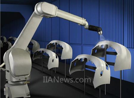 噴涂機器人又叫噴漆機器人(spraypaintingrobot),是可進行自動噴漆或噴涂其他涂料的工業(yè)機器人,1969年由挪威Trallfa公司(后并入ABB集團)發(fā)明。噴漆機器人主要由機器人本體、計算機和相應的控制系統(tǒng)組成,液壓驅(qū)動的噴漆機器人還包括液壓油源,如油泵、油箱和電機等。多采用5或6自由度關(guān)節(jié)式結(jié)構(gòu),手臂有較大的運動空間,并可做復雜的軌跡運動,其腕部一般有2~3個自由度,可靈活運動。較先進的噴漆機器人腕部采用柔性手腕,既可向各個方向彎曲,又可轉(zhuǎn)動,其動作類似人的手腕,能方便地通過較小的孔伸入工件內(nèi)部,噴涂其內(nèi)表面。噴漆機器人一般采用液壓驅(qū)動,具有動作速度快、防爆性能好等特點,可通過手把手示教或點位示數(shù)來實現(xiàn)示教。噴漆機器人廣泛用于汽車、儀表、電器、搪瓷等工藝生產(chǎn)部門。